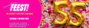 We bestaan 55 jaar! En dat vieren we op zaterdag 4 oktober met onze dansvoorstelling FEEST op het podium van het Rijswijks Lyceum. Als je het leuk vindt om te zien hoe we ons jubileum vormgeven en vieren in dans, dan kun je hier tickets bestellen.